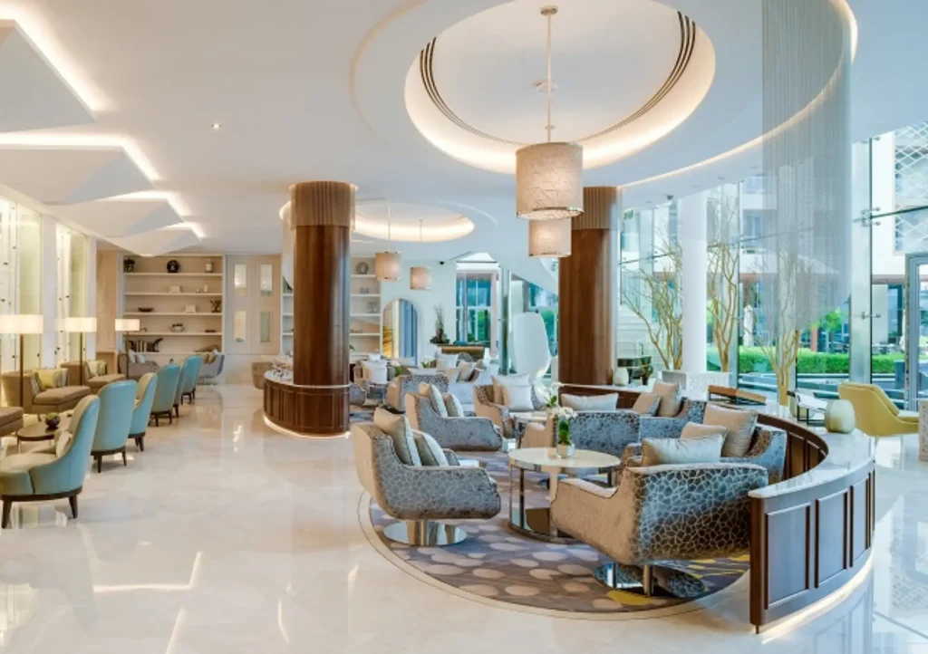 Distinct with its geometric diamond-shaped exterior the Kempinski Hotel Muscat at Al Mouj evokes a Middle Eastern village in the capital city of Oman. The hotel has a rich character combining contemporary with local and regional references. The Kempinski Al Mouj is a 5 star luxury hotel with 310 rooms and suites, the hotel features […]